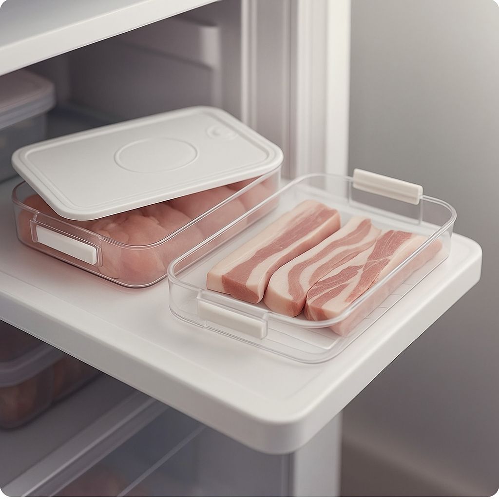 Organiza tus carnes y alimentos sin mezclas ni desorden. Ideal para refrigerar, congelar y apilar sin ocupar espacio extra. Limpio, práctico y seguro.